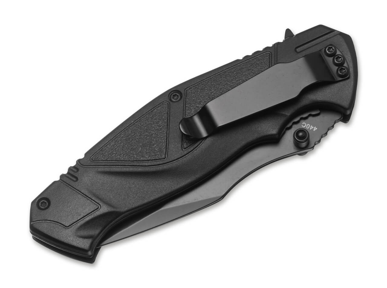 The Boker Plus All Black Pro is a well-constructed, high-quality tactical knife. The contoured, fiber-reinforced plastic handle scales, with a subtle subhilt, fit perfectly in the hand whether wearing gloves or not. The fiber-reinforced plastic ensures high stability and durability, while the contours of the handle provide excellent ergonomics. This guarantees a secure and comfortable grip, even under extreme conditions.