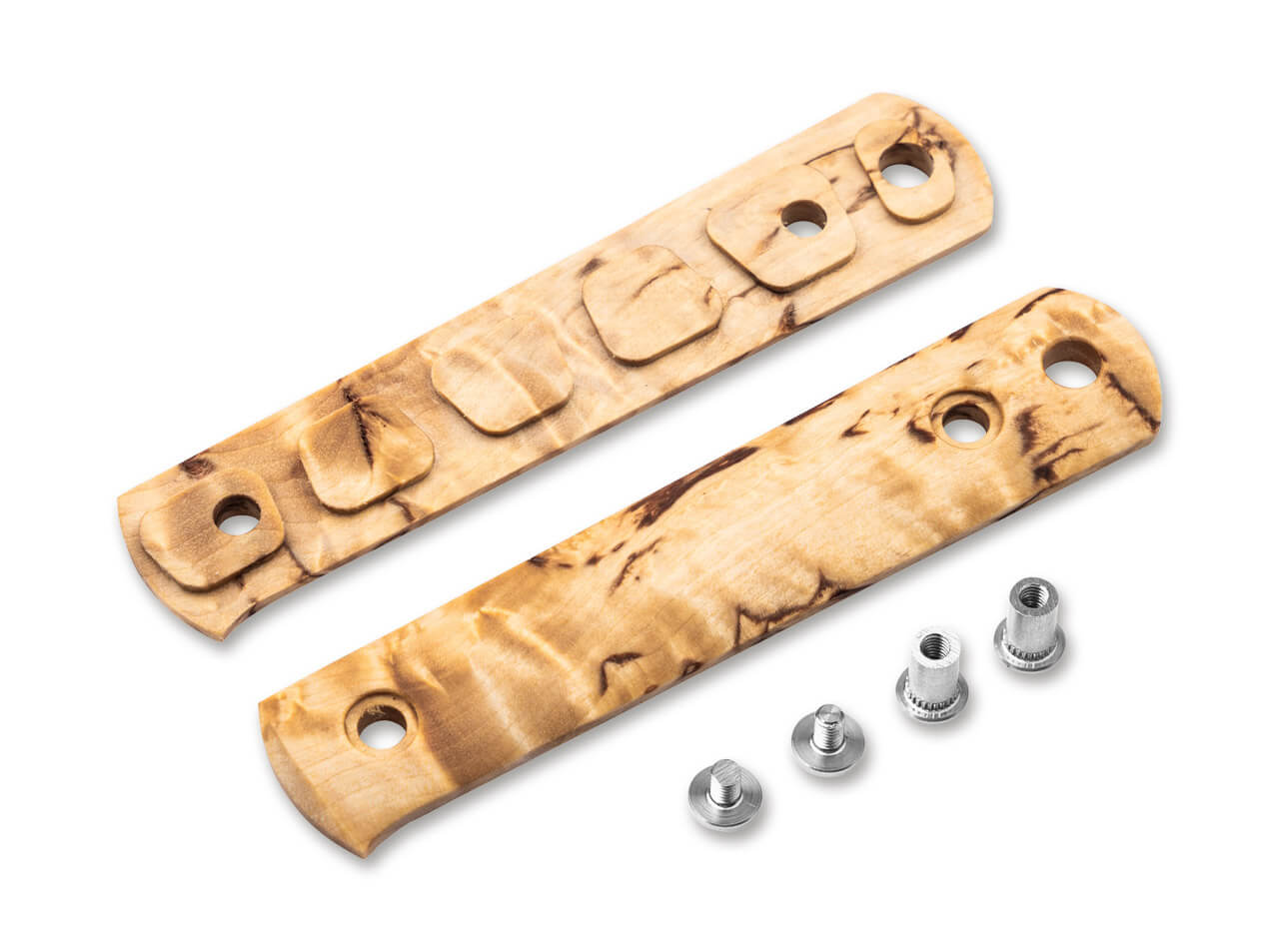 Simple, customizable, and highly practical, these removable handle scales made from curly birch give the Böker BFF Packlite a distinctive look while offering excellent comfort in hand. Installed or removed in just a few easy steps, the scales can be taken off for cleaning or customized to suit individual preferences. Crafted from high-quality materials and designed for flexibility, they are ideal for users who value both functionality and style. Supplied with a matching screw set.
