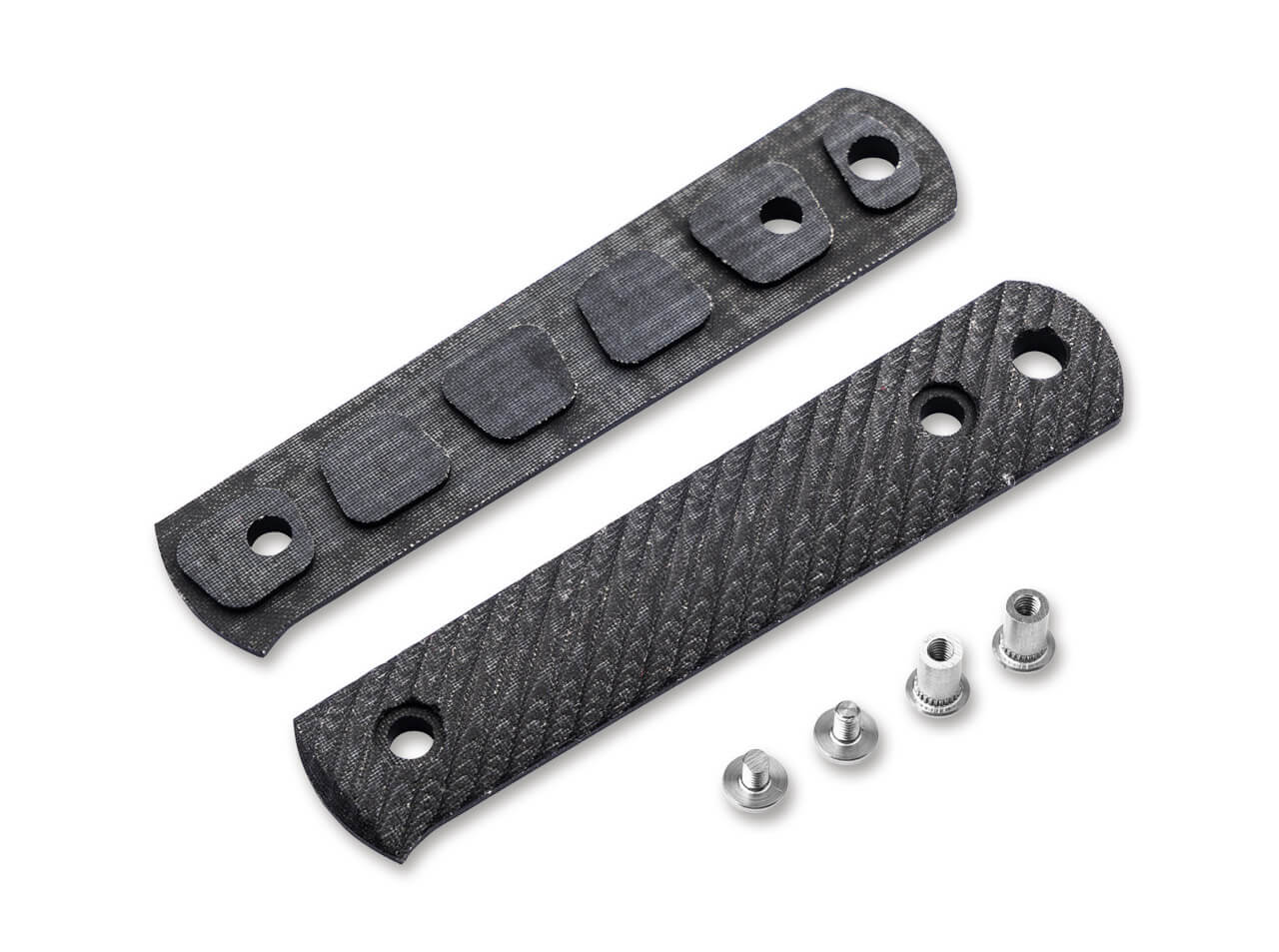 Simple, customizable, and highly practical, these removable handle scales made from black and white Linen Micarta give the Böker BFF Packlite a distinctive look while offering excellent comfort in hand. Installed or removed in just a few easy steps, the scales can be taken off for cleaning or customized to suit individual preferences. Crafted from high-quality materials and designed for flexibility, they are ideal for users who value both functionality and style. Supplied with a matching screw set.
