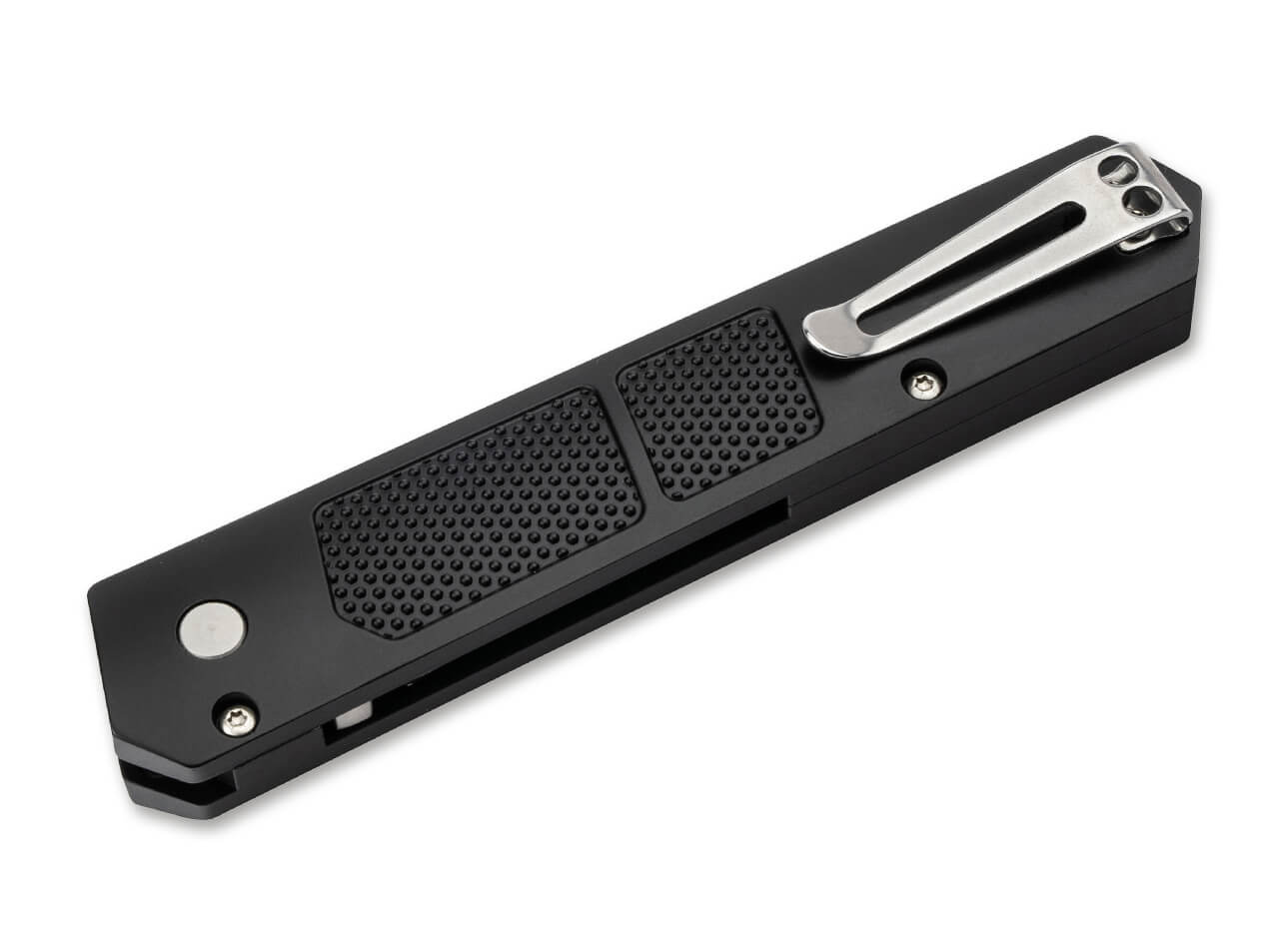 The satin-finished D2 steel blade deploys instantly at the push of a button, combining reliability, cutting power, and corrosion resistance. Its slim aluminum handle features non-slip texturing, ensuring a secure and confident grip in all conditions.