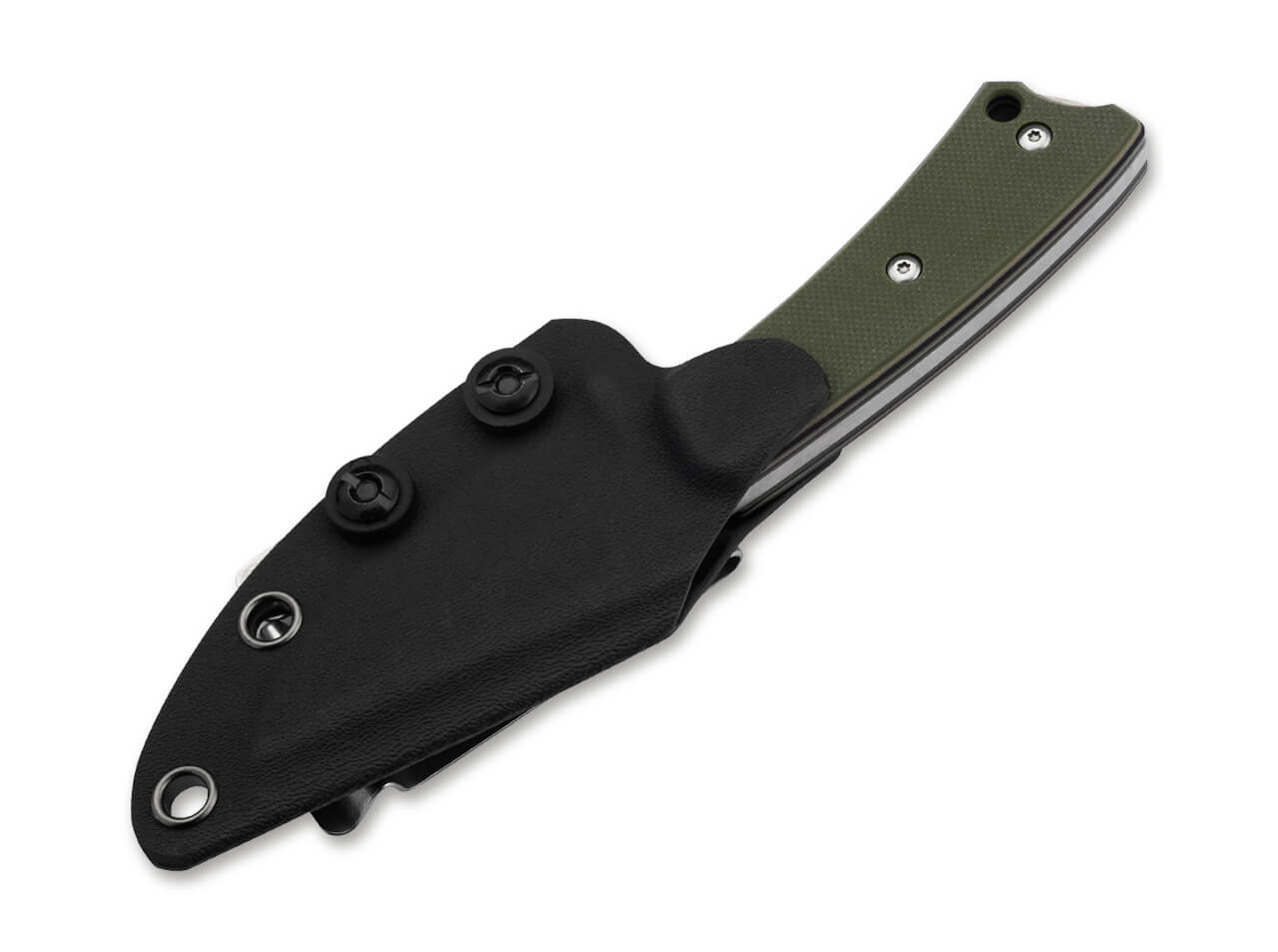 Two-tone G10 handle scales provide secure traction and a comfortable grip, completing a design that’s as practical as it is easy to carry. The Piranha comes ready for adventure with a precision-molded Kydex sheath and a small belt adapter.