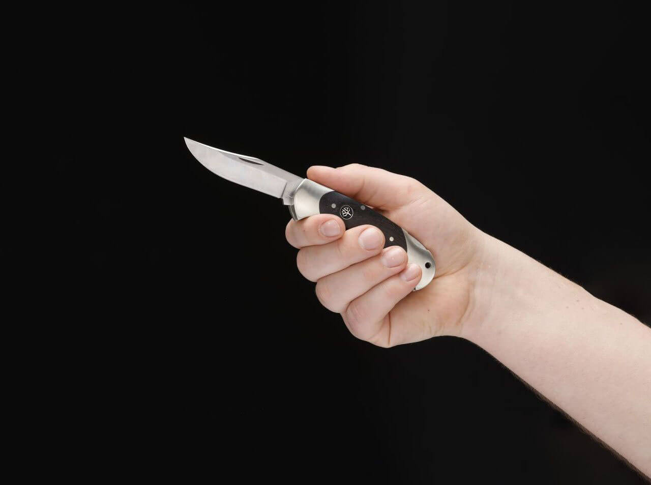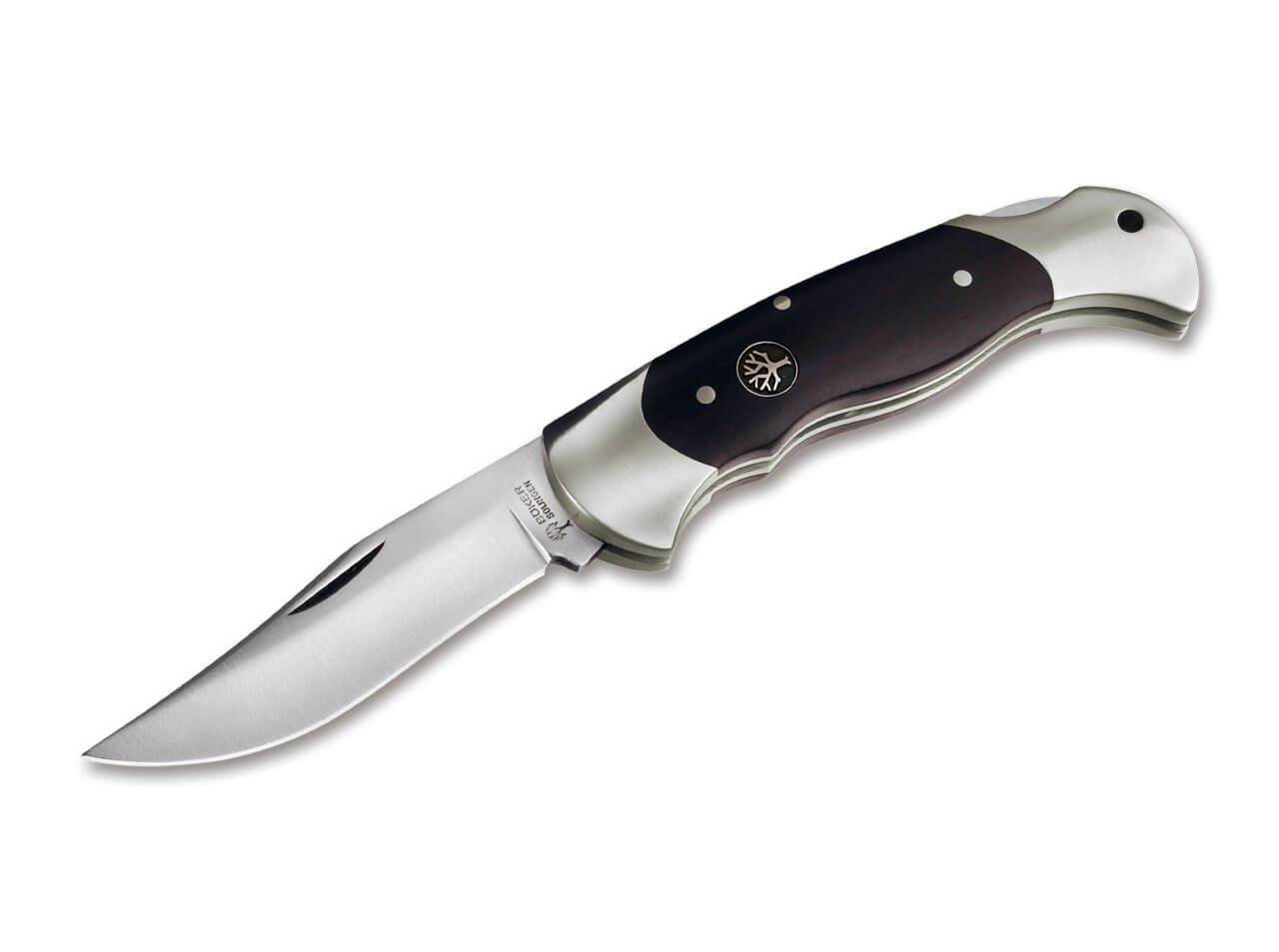 A classic Backlock keeps the blade safely open. When the knife is opened, the spine locks into a notch on the back of the blade. To close the knife, push down the exposed part of the spine. The harmonic overall impression of this classic is completed by pleasantly shaped handle scales made of elegant certified imported Grenadill Wood.
