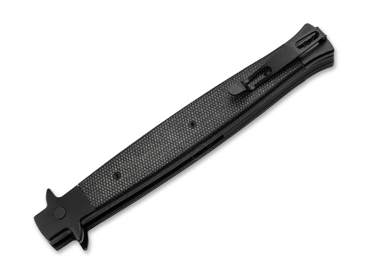 Whether opening boxes, cutting rope, or serving as a stylish everyday companion, the Boker Plus Stiletto 5.0 All Black balances function and elegance with ease. A tip-up, right-hand deep-carry pocket clip allows discreet carry.