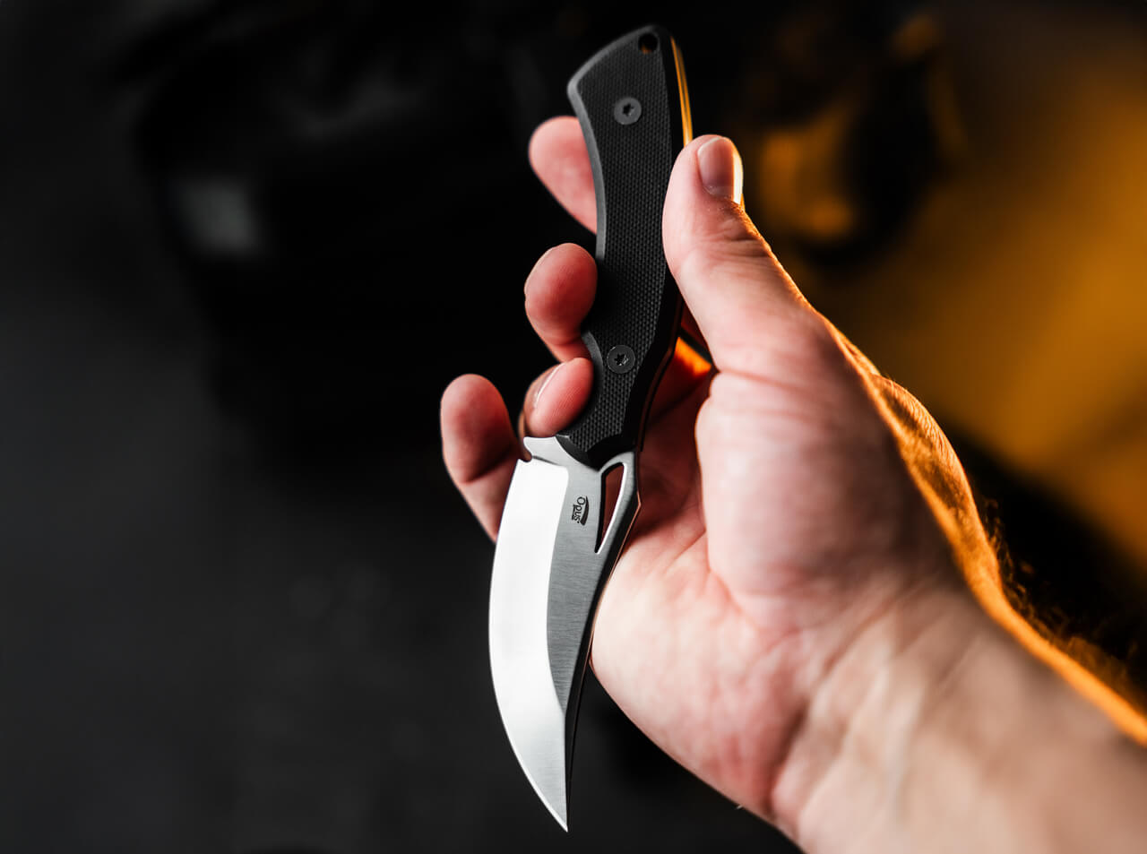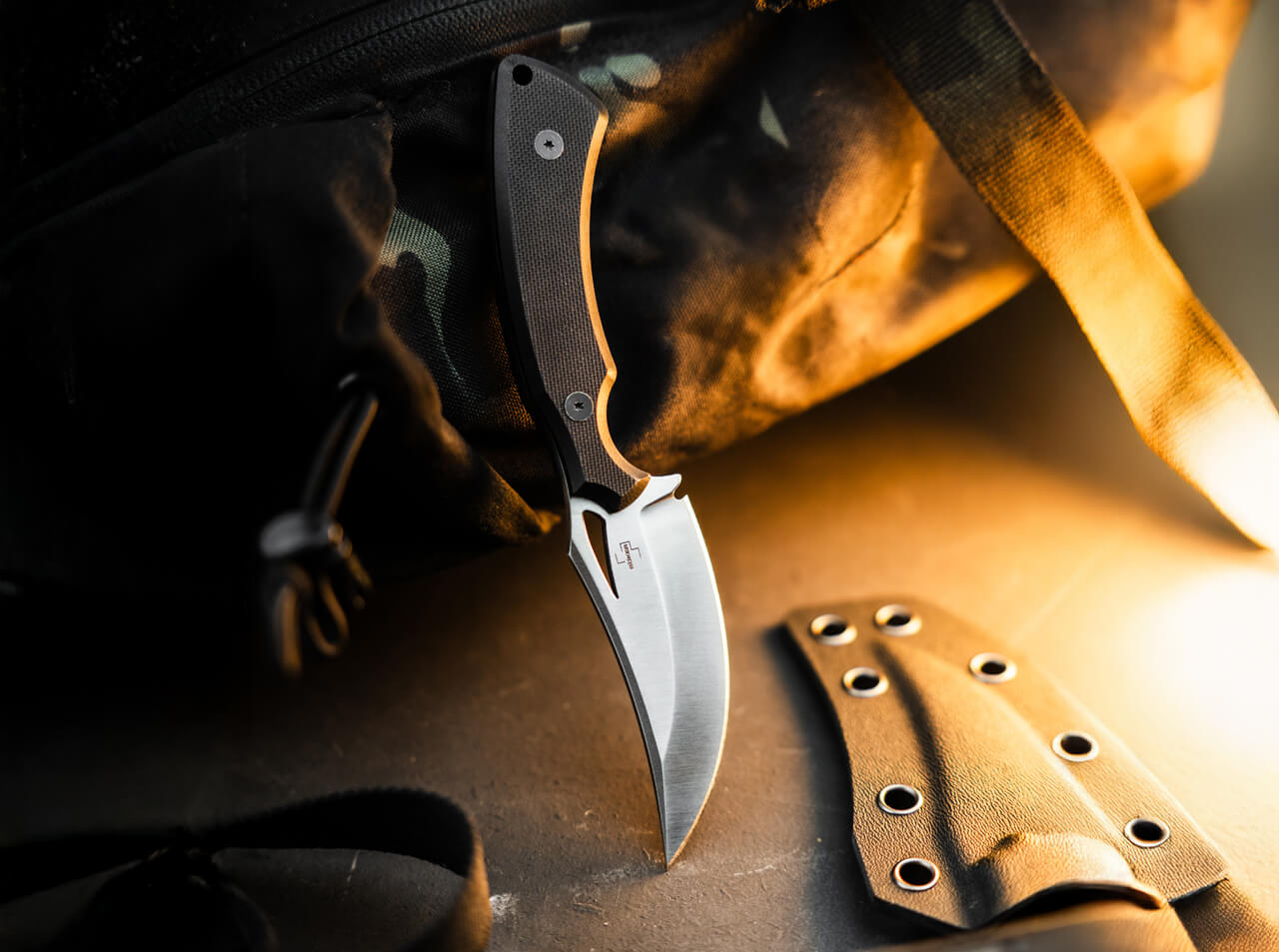 Featuring a progressive design, the Tavros is equipped with a Persian-style D2 blade with a refined satin finish, paired with durable black G10 handle scales. The blade’s sweeping silhouette echoes the powerful horns of a bull, while the designer’s signature teardrop cutout delivers the unmistakable “evil eye.”