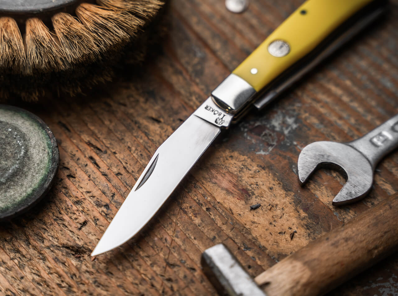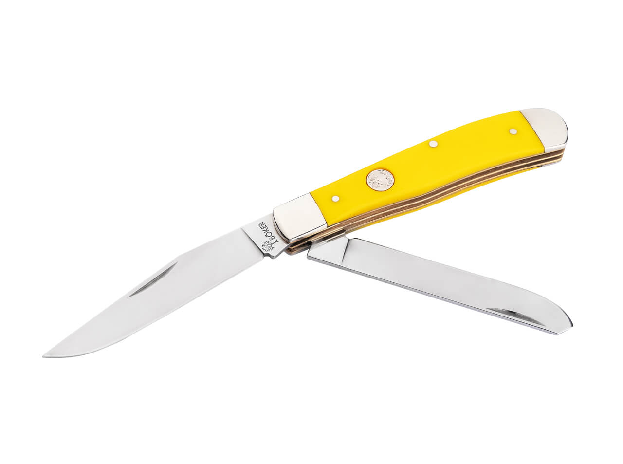 This knife is extremely well built and came razor sharp out of the box. The yellow is vibrant without being too much, the blades are a great size for any cutting task and the back spacers are flush and smooth with the scales. This is my first Boker traditional knife and it won't be my last.