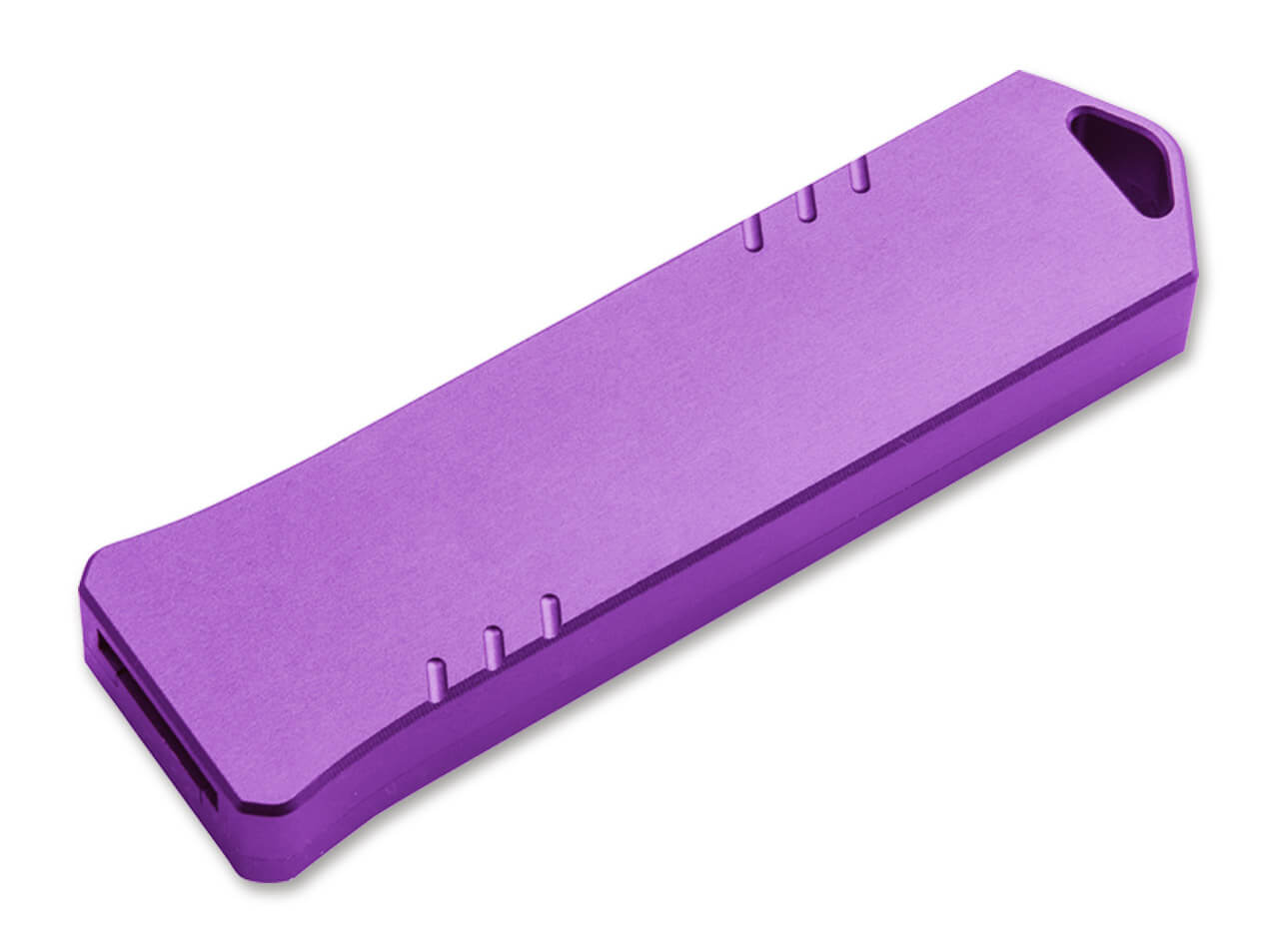 The vibrant purple CNC-milled 6061-T6 aluminum handle adds personality and strength in equal measure - lightweight, durable, and unmistakably bold. A lanyard hole allows keychain attachment, while the wide tip-down pocket clip (right-hand) ensures discreet, secure carry.